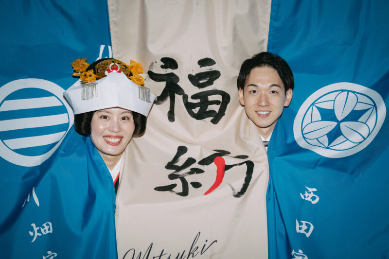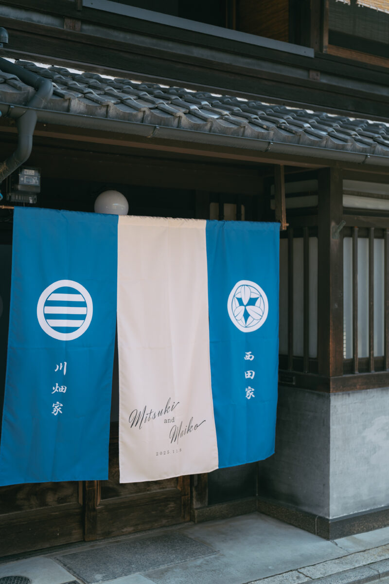 町屋でのウェディングなので、入り口にウェルカムのれんを飾りましょう